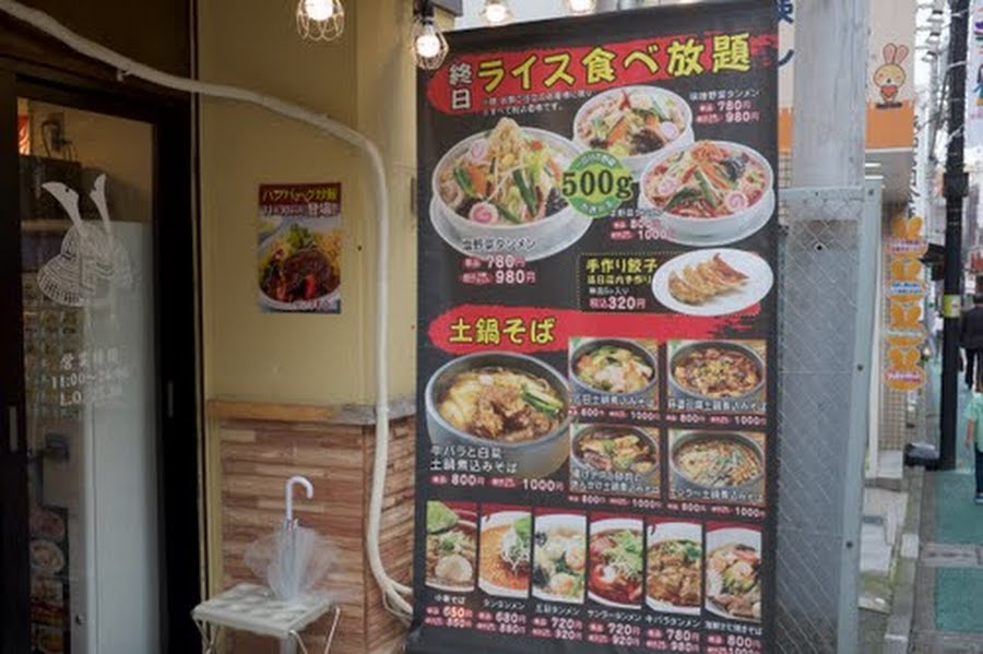 こちらはタンメン専門店です。 中でもオススメは野菜タンメン。女性にもやさしいヘルシーなタンメンで1日に必要な野菜500gがたっぷり入っています。 武者チャーハンは1コイン500円で、がっつり食べたい男性にはなんと、特盛までチャーハンの量を無料で提供しております。 そしてチャーハンには本場の半角中華スープが付いていて、おかわり自由!!
